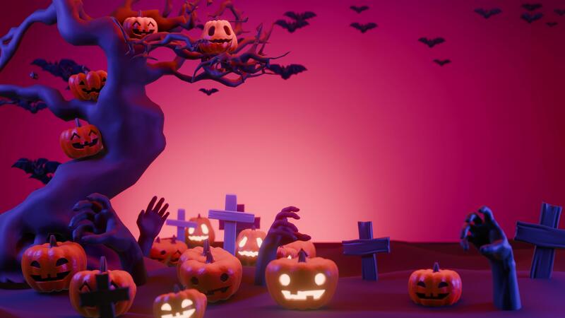 Scary Graveyard with Zombie Hands, Jack o Lanterns, and Twisted Trees at Sunset Background, seamless loop Pro Video