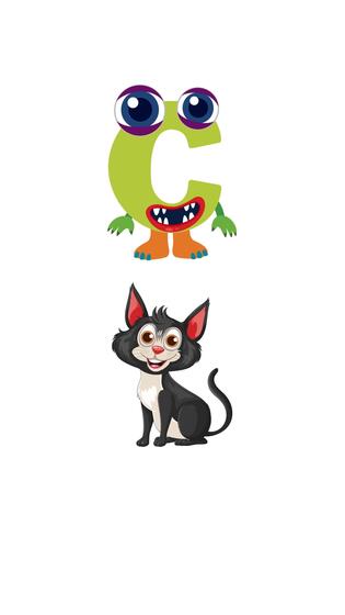 Playful animation of the letter 'C' transforming into a character with a cat, emphasizing learning and fun Pro Video