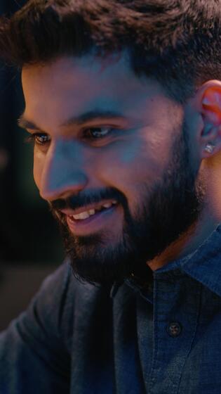 Overtime night working Indian businessman male guy manager business man at dark evening office working with laptop computer browsing at desk smiling employer worker programming online commerce project Pro Video
