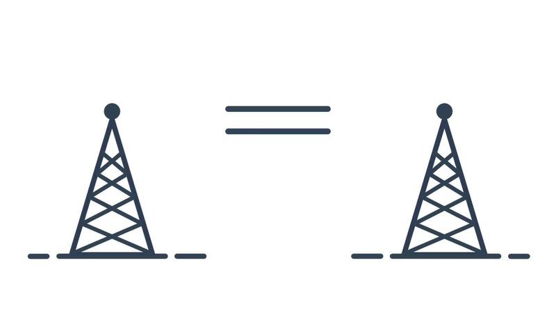 Two broadcast towers face each other, linked by a visual signal, emphasizing direct transmission and connected communication paths Free Video