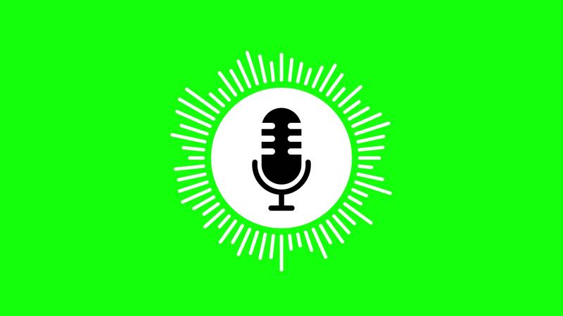 Podcast Microphone Icon with Radiating Sound Waves on Green Screen Suitable for Audio Visualizer, Stream Overlay, or Music Intro Pro Video