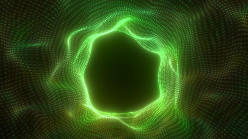 Circular green vortex made of digital particle streams forming a dense and glowing tunnel Free Video