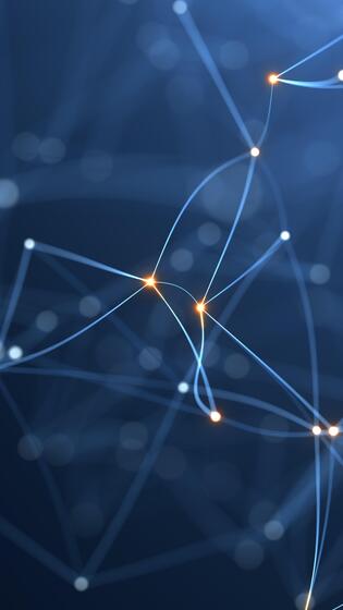Dynamic network of glowing nodes and connecting lines on a dark blue background, representing data flow, digital connections, or futuristic technology. Perfect for tech or AI themes. Pro Video