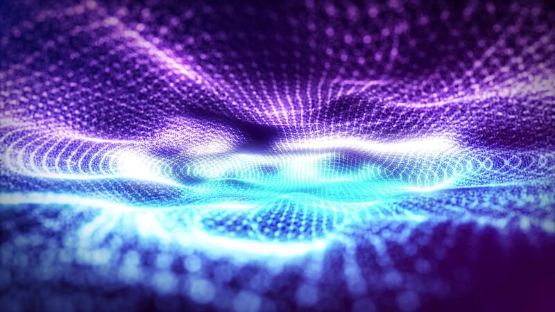 Vibrant 3D wave of glowing particles in motion, forming an abstract, futuristic landscape in purple and cyan tones. Ideal for tech, data, or digital background concepts. seamless loop Pro Video