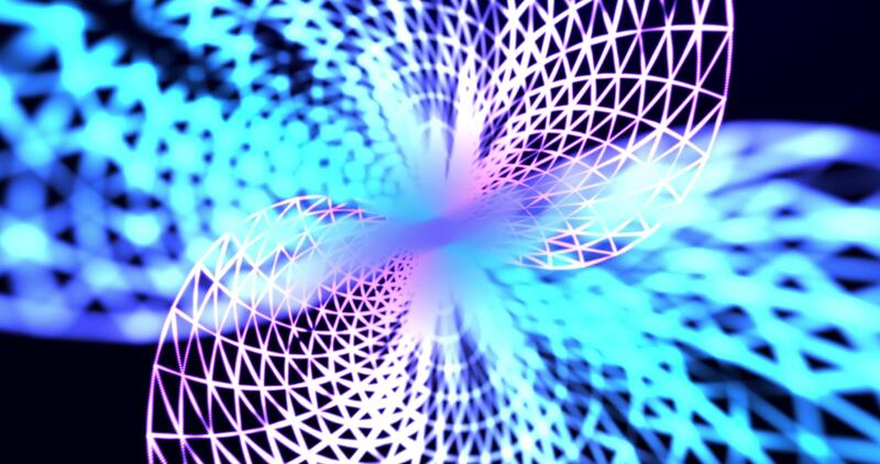 Abstract 3D geometric mesh with glowing blue and purple lines on a dark background, creating a futuristic, digital, and dynamic motion ideal for technology, network, and sci-fi projects Pro Video