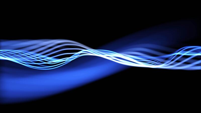 Smooth flowing blue light waves move rhythmically on a black background. Futuristic abstract animation perfect for tech, music, sound visualization, or modern digital design. seamless loop Pro Video