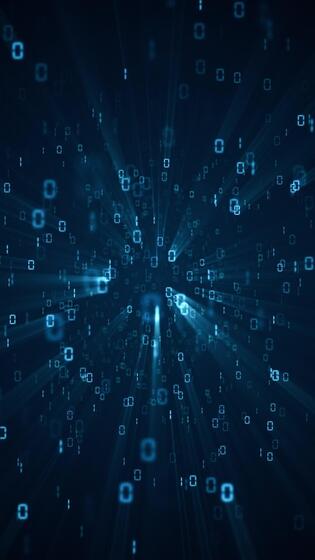 Futuristic digital background with high speed flashing binary code ones and zeros streaming towards the camera. Full HD and looping data technology background. Vertical animation. Free Video