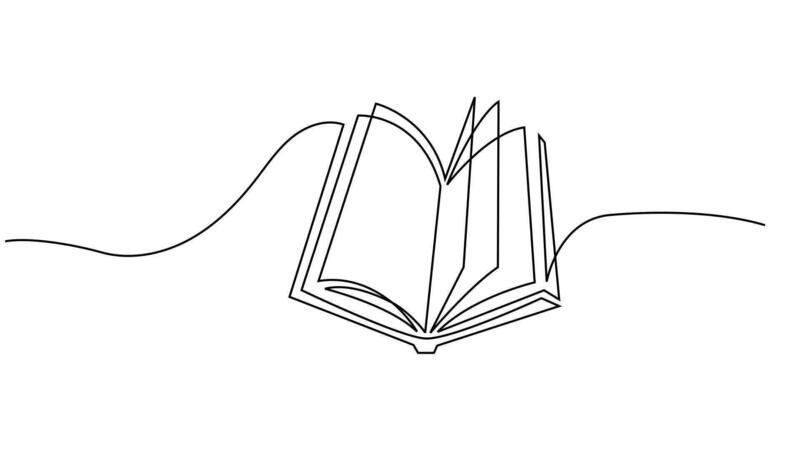 Animated continuous one line drawing of an open book creating itself in real time. Minimalist animation perfect for education, school supplies, learning Pro Video