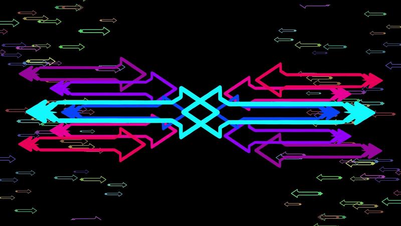 Vibrant Neon Arrows Dynamic Abstract Flow and Symmetrical Patterns on a Black Background, Colorful Arrow Network Data Flow Communication Tech Background, Cybernetic Arrow Burst Complex Directions Free Video