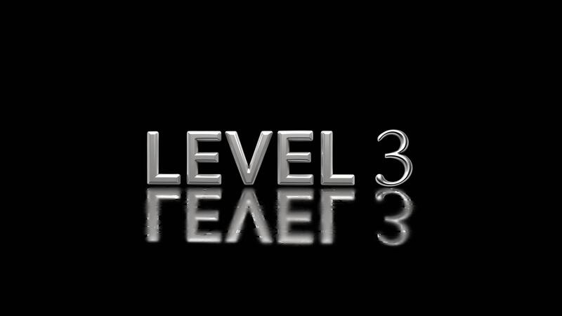 Level 3 Game Intro Metallic Text Animation with Reflection on Black Background Free Video