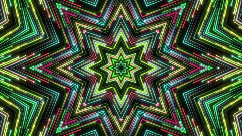 Dynamic Neon Star Kaleidoscope with Vibrant Glowing Lines Abstract Background Loop,Wide Starburst Kaleidoscope Vibrant Light Streaks Geometric Shapes, Abstract Neon Star Pattern Full Frame Colorful Free Video