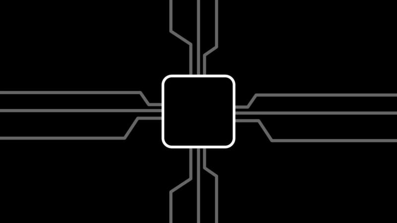 Circuit-like lines connecting to a chip represent how modern systems and devices are integrated through technology and electronic networks Free Video
