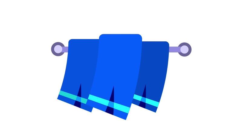 Simple clean icon of blue towel hanging on bar possibly representing rest, refresh, hygiene or spa-based themes in a digital UI Free Video