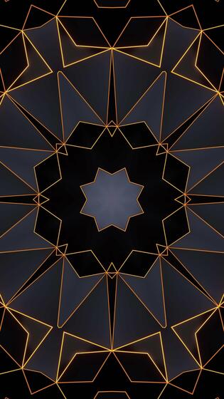 Black and yellow abstract background with star pattern. Kaleidoscope VJ loop Vertical Pro Video