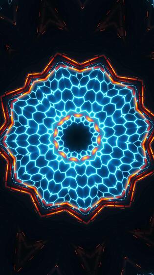 Circular object with many lights. Kaleidoscope VJ loop Vertical Pro Video