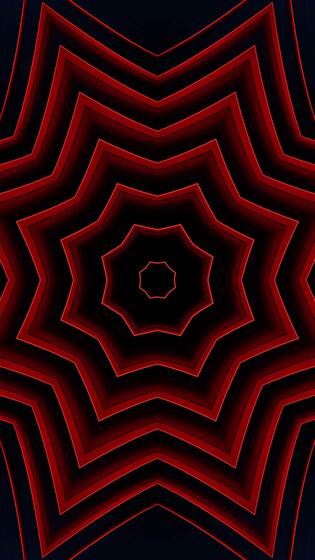 Red and black background with star pattern in the center. Kaleidoscope VJ loop Vertical Pro Video