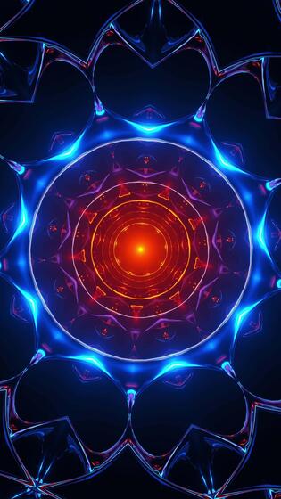 Blue and red circular pattern with bright light. Kaleidoscope VJ loop Vertical Pro Video