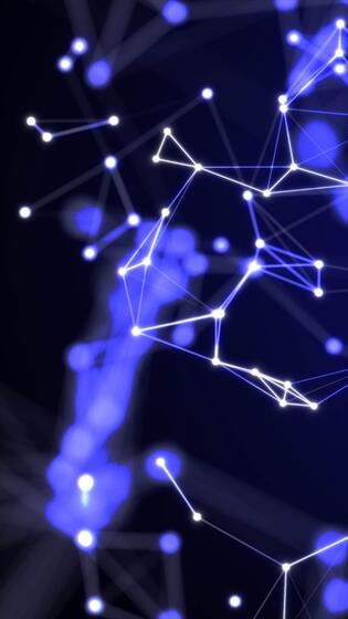 Abstract neural network pattern with glowing blue nodes and connecting lines on a dark background Pro Video