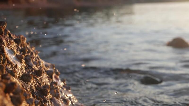 Fossilized sea shells embedded in rock, waves splash slow motion Free Video