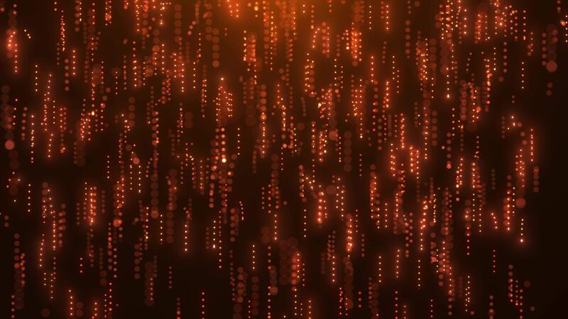 Orange glowing particles falling in vertical lines on a dark background, creating a warm, festive, elegant atmosphere perfect for backgrounds, events, and celebration projects. Seamless loop Pro Video