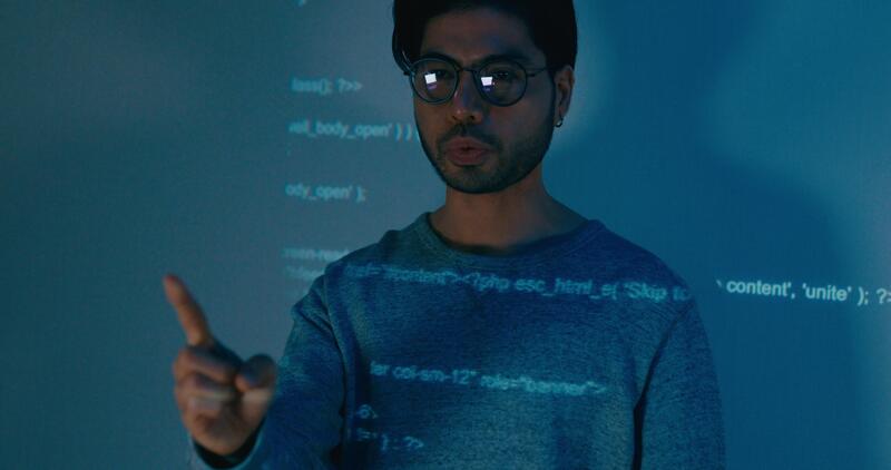 adult Asia male software developers mentor leader manager talk strategy plan to executive write prompt AI bot IT app program nomad, game, designer, data center. Projecting slideshow code. Pro Video