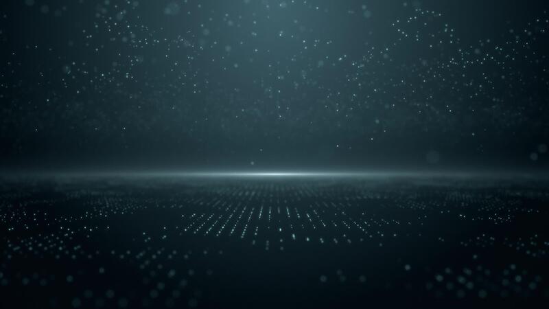 Futuristic digital landscape technology background with a grid network of digital data lights and bouncing particles. Global data communications concept. This dark atmospheric animation is a loop. Pro Video