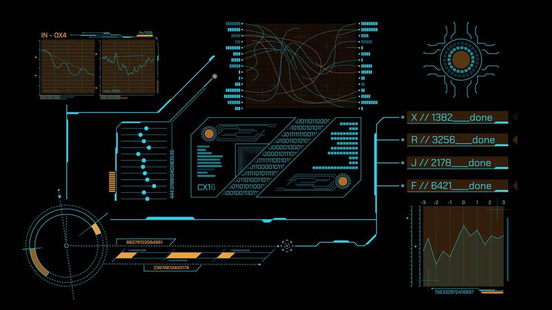 Animated screen with HUD and infographic elements for working with data Pro Video