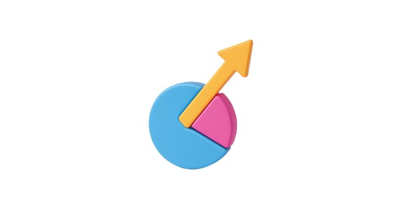 Ascending pie chart visualizing financial growth trajectory, representing business performance metrics on clean white surface Pro Video