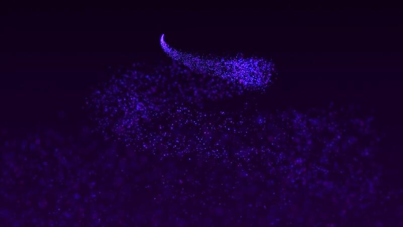 Abstract background with spiraling swirls of neon colored particles with shallow depth of field. This magical motion background animation is full HD and a seamless loop. Free Video