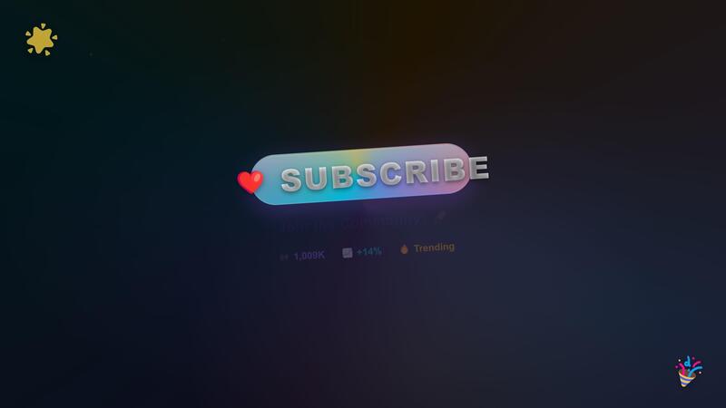Animated subscribe button with trending statistics and animated elements on dark background Free Video