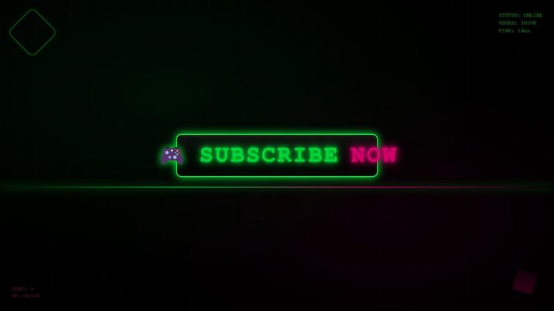 Glowing neon gaming interface with subscribe now button and user statistics Free Video
