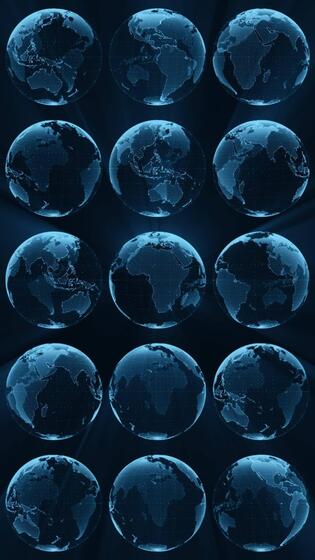 Futuristic digital globe background featuring multiple glowing blue Earth holograms on a dark tech-themed backdrop. Global data communications and connectivity concept. Full HD vertical loop. Free Video
