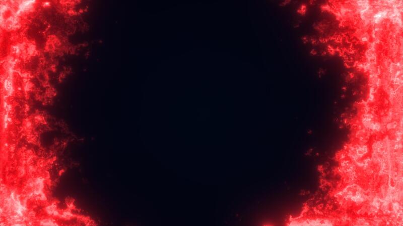 Abstract red glowing border forming a dynamic, sci-fi frame with dark center and textured energy particles Free Video