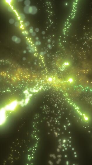 A tunnel of floating glowing orbs and light trails creating a deep starfield effect with golden and teal particles Pro Video