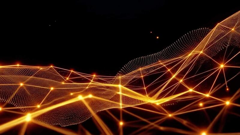 Dynamic abstract background featuring a golden, glowing grid network pulsating and flowing Free Video