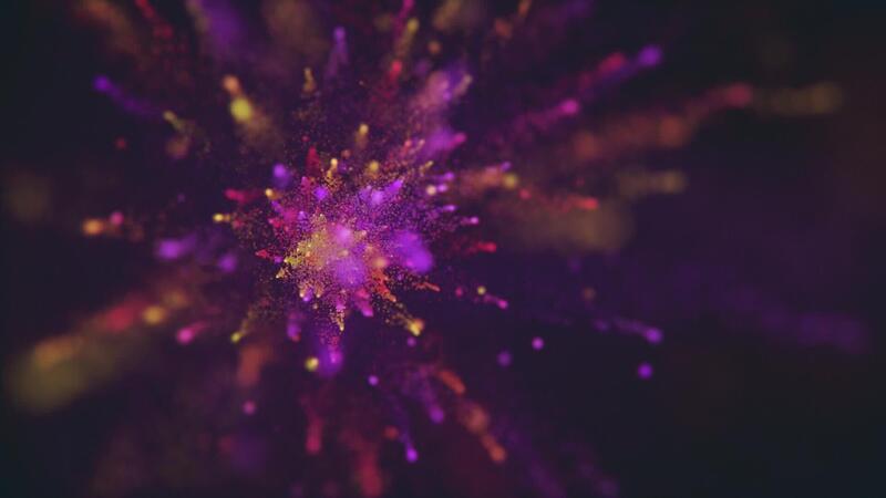 Vibrant colorful abstract background with an explosion of multicolored particles flowing towards the camera. Full HD and looping particle animation. Free Video