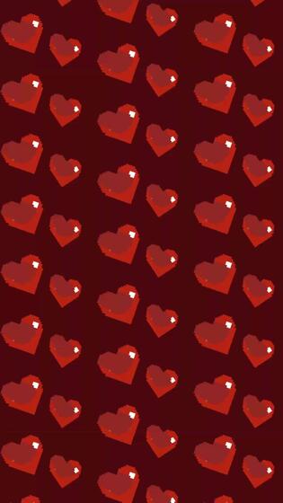 Animated footage featuring a repeating pattern of red pixelated hearts on a dark red background. The hearts subtly shift, creating a charming, nostalgic, and romantic retro vibe. Pro Video