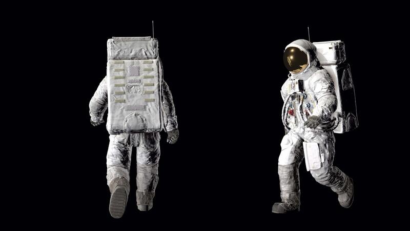 3d rendering animation. Two Astronaut walk on transparent background, alpha channel, Pro Video