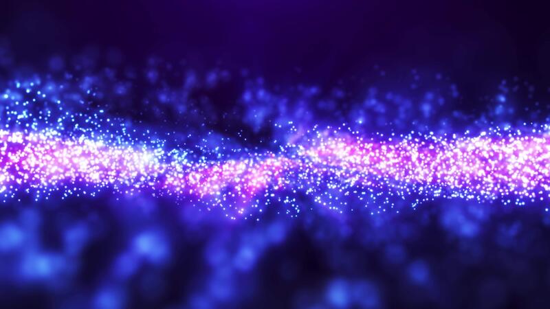 Blue glowing particles swirl with wave energy in a dark abstract space, forming a sparkling, airy stream of light. Perfect for backgrounds, futuristic, festive or sci-fi visuals, seamless loop. Pro Video