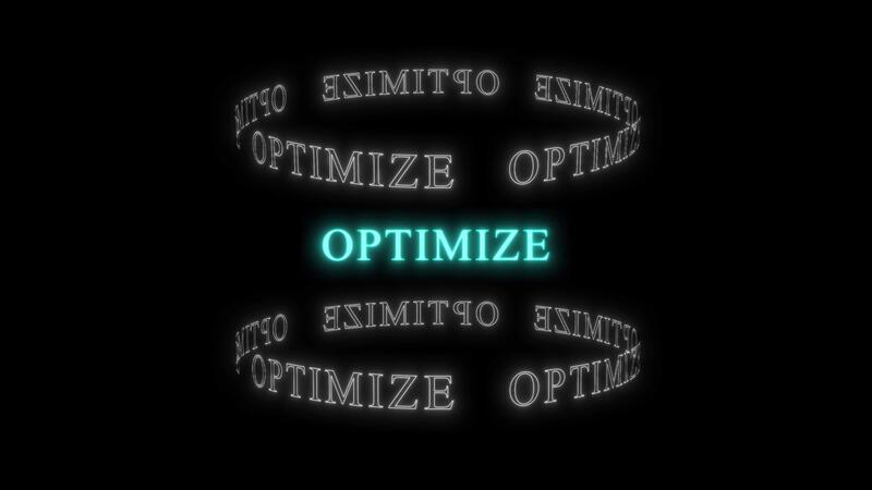 Dynamic 3D Neon 'Optimize' Text Animation Loop with Glowing Blue and White Typography on a Black Background, OPTIMIZE surrounded by repeated text, conveying iterative refinement.Vibrant aqua OPTIMIZE Free Video