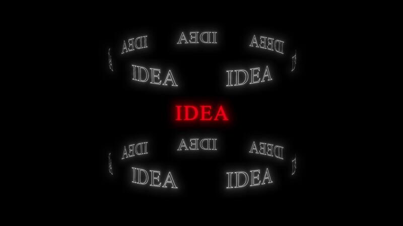 Dynamic 3D IDEA Text Animation with Rotating Neon Elements and Reflections on Black Background, Isolated Glowing IDEA Word Inspiration, Solution, Concept Generation, Bold IDEA on Black Background Free Video