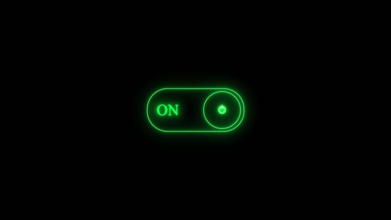 Interactive UI Element Green Toggle ON.Glowing Green ON Toggle Switch UI.Digital Power On Button Interface Element. Free Video