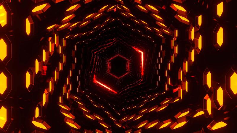 Orange and Red Hexagonal Neon Honeycomb Tunnel Background VJ Loop in 4K Pro Video