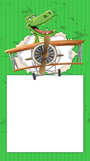 A cartoon crocodile joyfully emerges through a paper plane against a vibrant green background, creating a playful and dynamic scene Pro Video