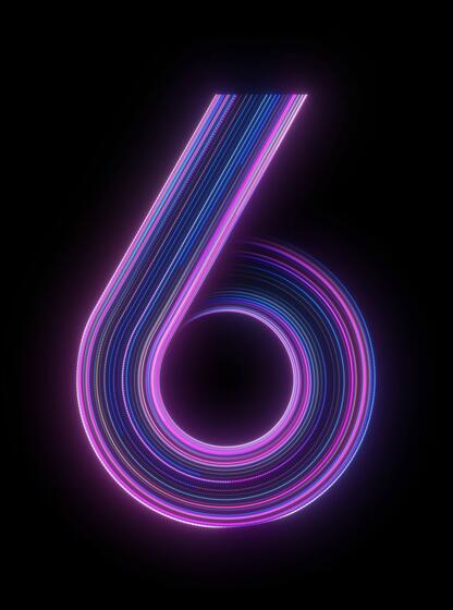Animated number 6 glowing in blue and purple tones appears on transparent background with alpha channel this digit is part of a high quality neon number futuristic digital interfaces and creative Pro Video