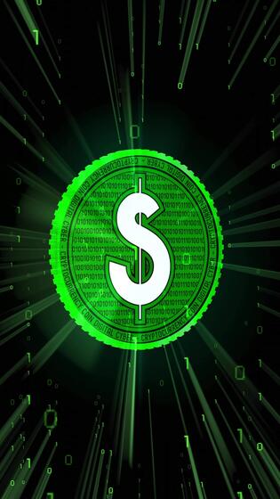 Rotating Dollar Coin, Binary Code in Background Pro Video