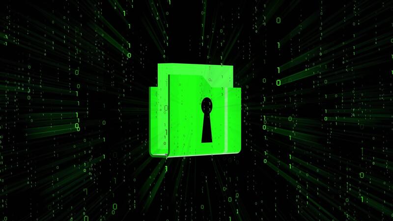 Rotating Green Folder with Keyhole and Binary Code - Digital Data Concept Pro Video