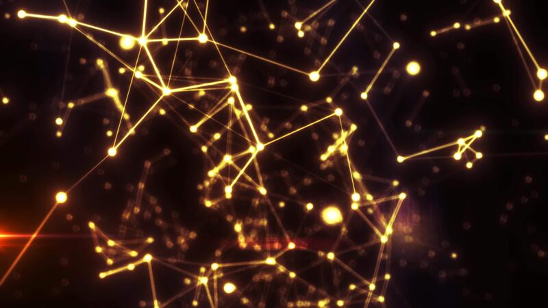 Abstract glowing yellow network of connected nodes and lines on a dark background, symbolizing data or neural connections Free Video