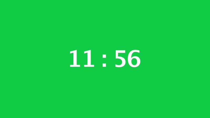 Digital countdown timer with a green screen background. Time counts down from 12 minute to 11 minute. Free Video