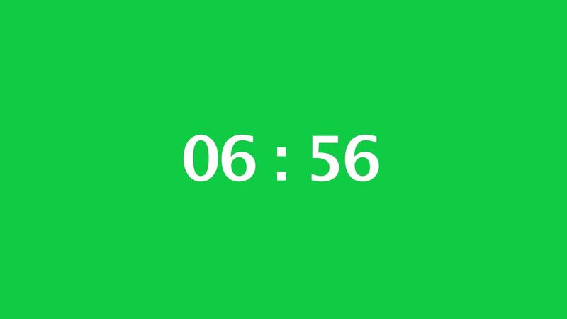 Digital countdown timer with a green screen background. Time counts down from 7 minute to 6 minute. Free Video